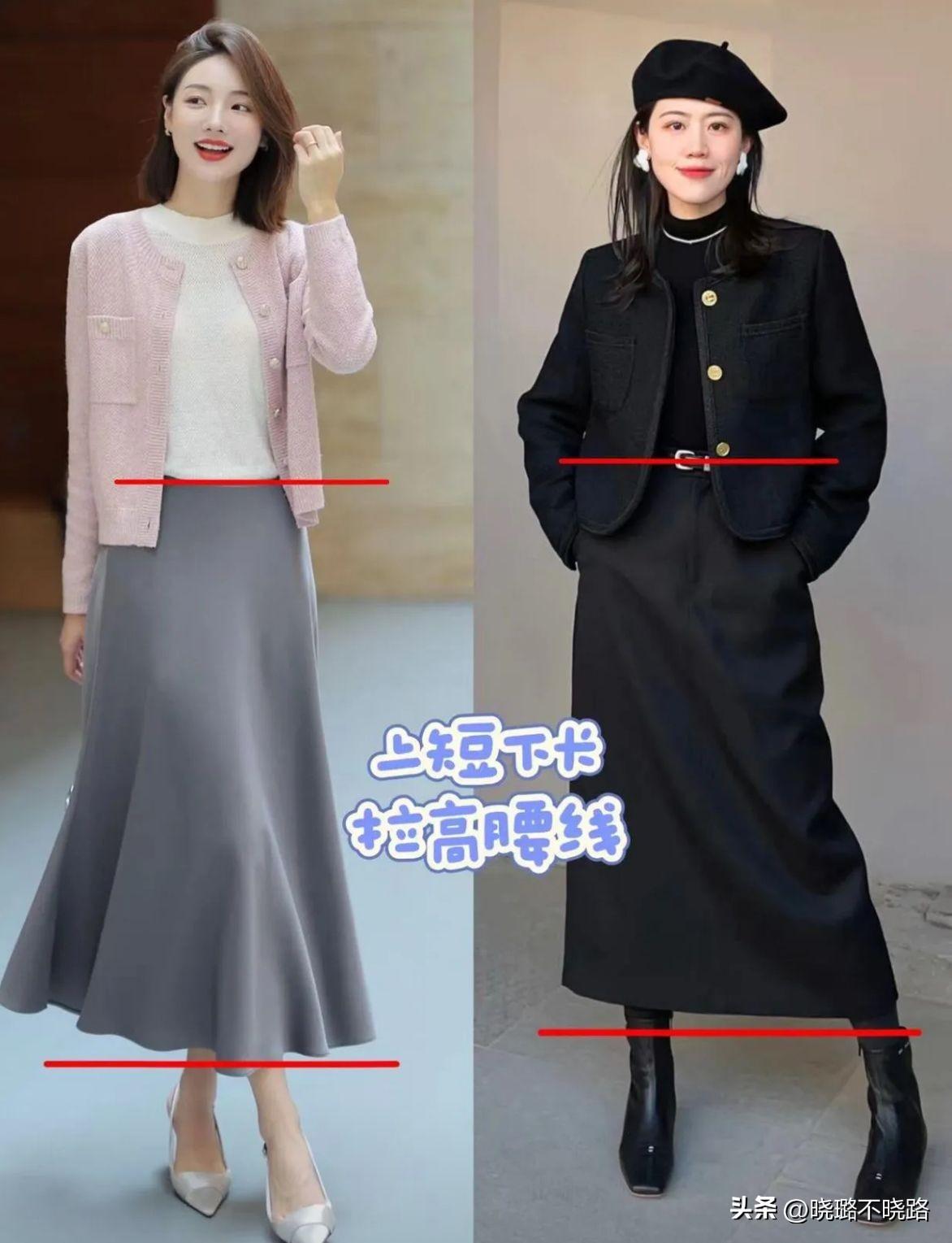 穿裙子要掌握好技巧,纔不會顯得單調無趣,秋冬季節想要顯瘦顯高,就要拿捏“上短下長”的技巧。