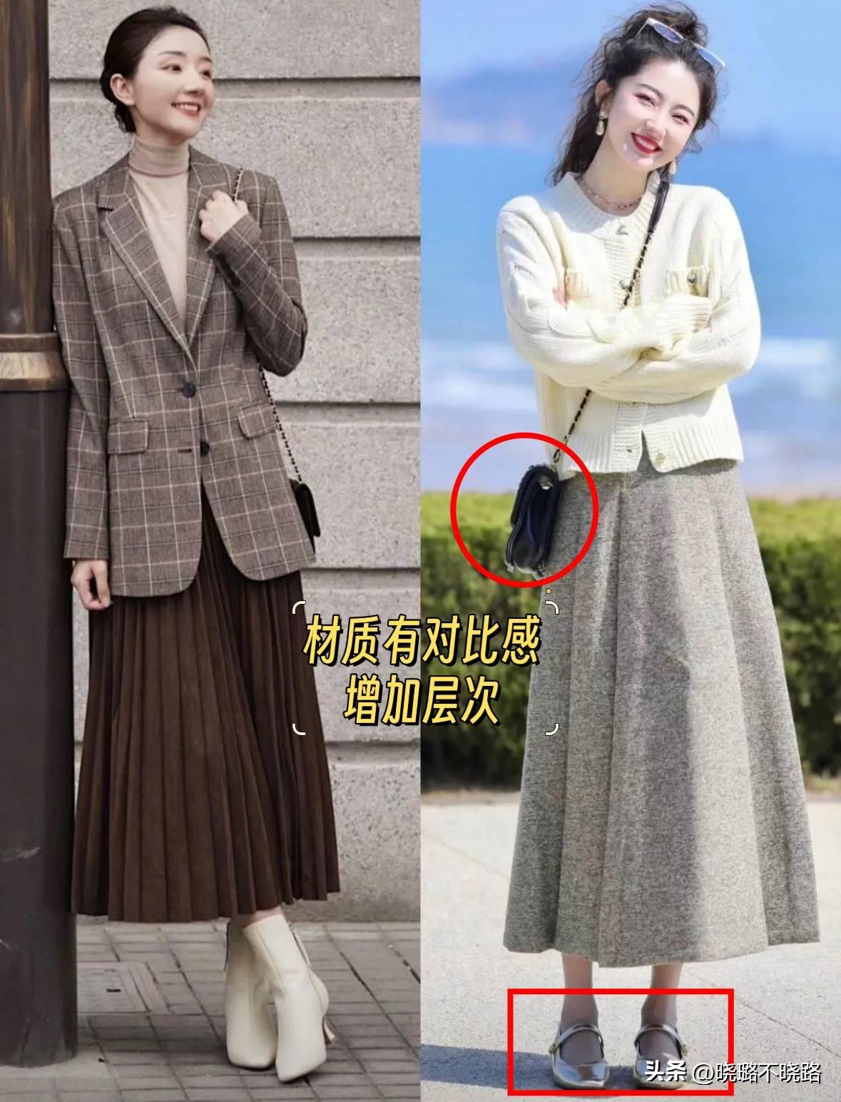 秋冬季節挑選裙子,一定要擦亮雙眼,能穿長裙就不要穿短裙,裙子的露膚度太高,就會暴露腿型缺陷,時髦度爲0,而且還缺乏保暖性。