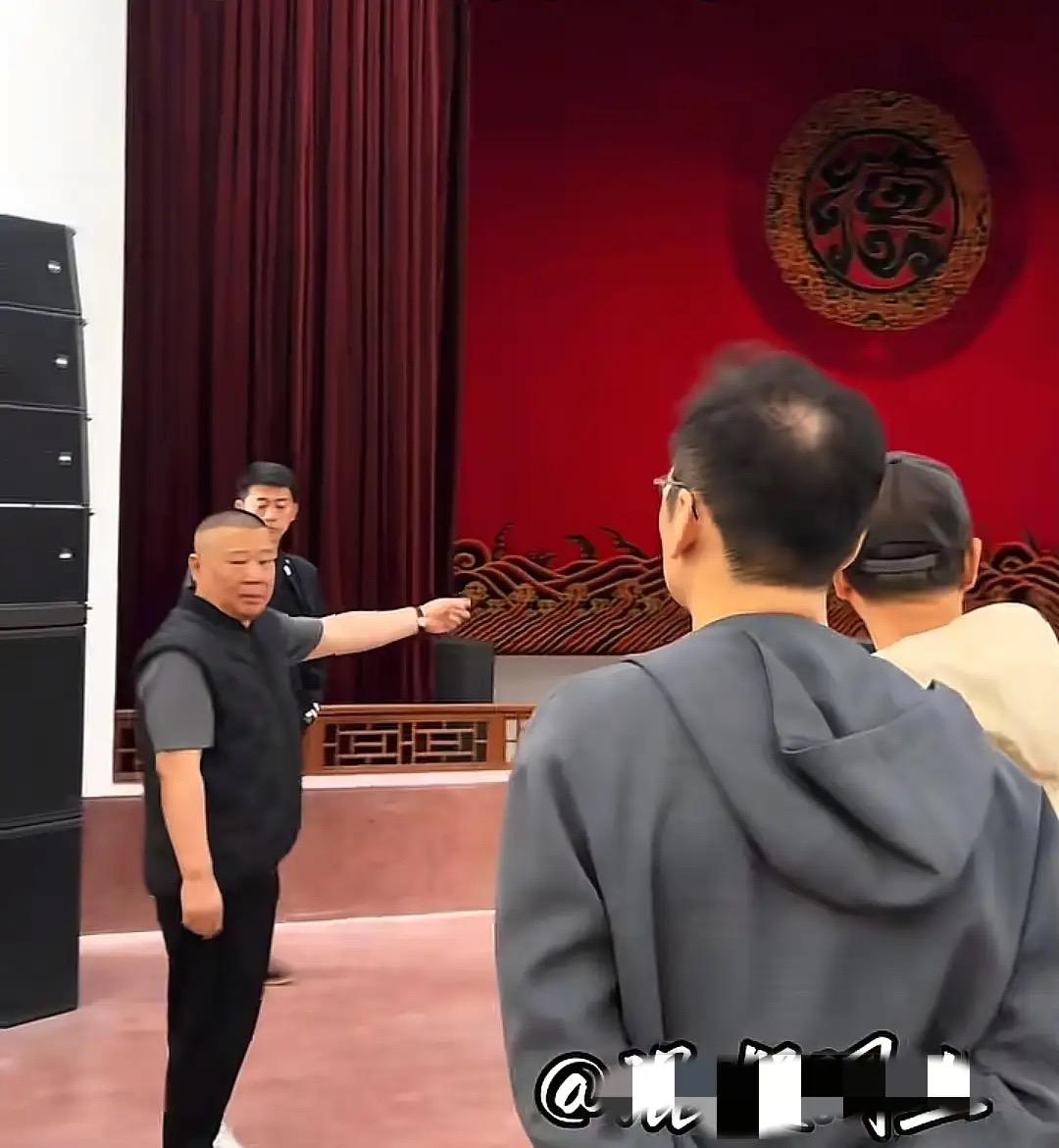 工作人員給郭德綱搬了一張老闆椅,他坐在上面很氣派。郭德綱可能是想要看一下舞臺的效果,哪裏還有需要改進的地方。