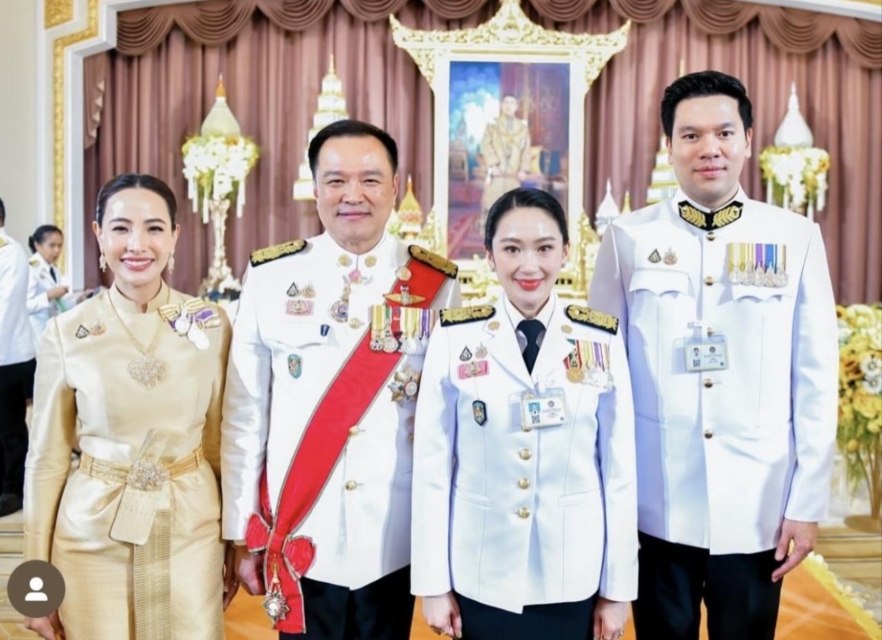 戀愛八年,他們常去街頭喫大排檔,她陪他出席政黨活動,他支持她的公益項目。阿努廷公開自稱 “泰國妻管嚴協會會長”,會在紅毯上主動退後半步讓她成爲焦點;她則懂他的壓力,從不在家中提及政治博弈。