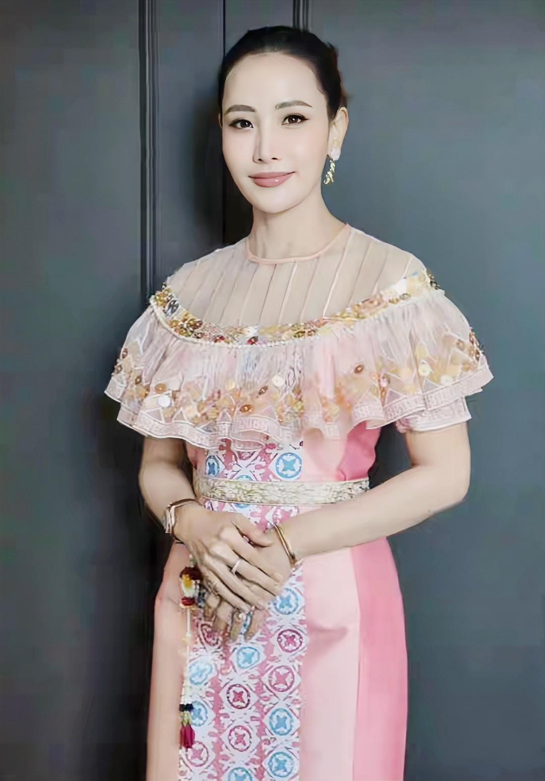 蘇帕南的日常穿搭中,民族服飾是高頻選擇,卻從未陷入 “復古陳舊” 的窠臼。她常穿改良版泰絲套裝,上衣保留傳統立領與盤扣元素,下裝則改爲修身直筒褲,方便日常活動。