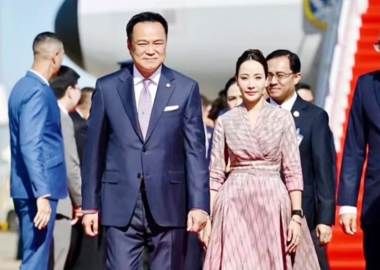 “清水出芙蓉,天然去雕飾”,當 39 歲的泰國第一夫人蘇帕南・尼拉米特光腿踏上首爾 APEC 紅毯,黑色風衣勾勒出挺拔身姿,珍珠耳環隨步履輕晃,瞬間打破 “政治配偶” 的刻板想象。