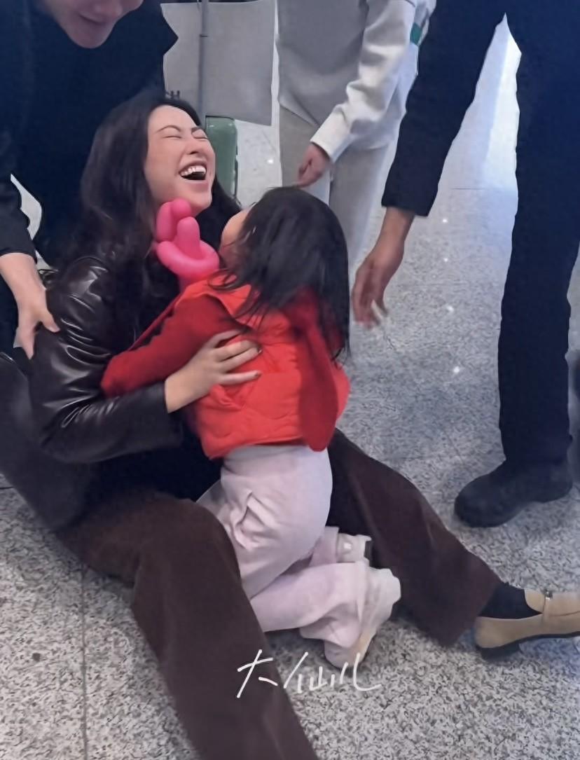 朱珠被4歲女兒撲倒,癱坐地上笑得見牙不見眼,3名助理才扶起來