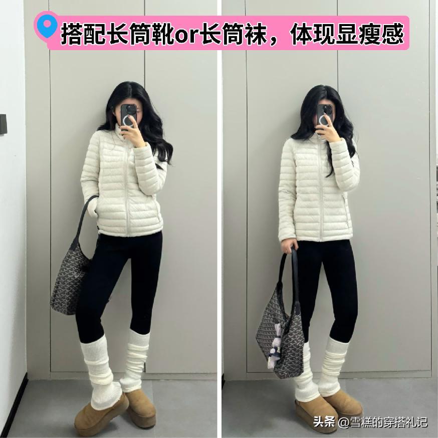 ㈡ 排骨羽絨服+無痕褲的組合:顯瘦顯腿長