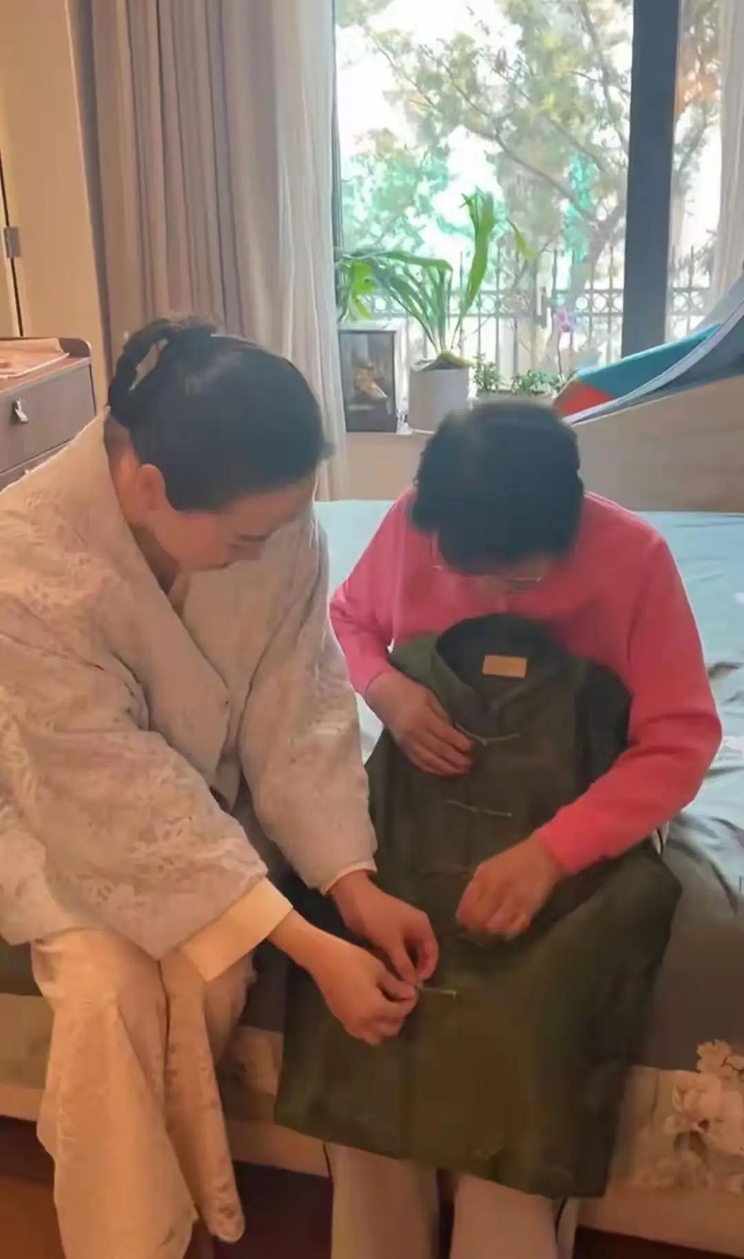 婆婆穿上西華送的衣服,還和她一起合影了。雖然林依輪媽媽年紀大了,身形也比較消瘦,但看着還是蠻有精神的。