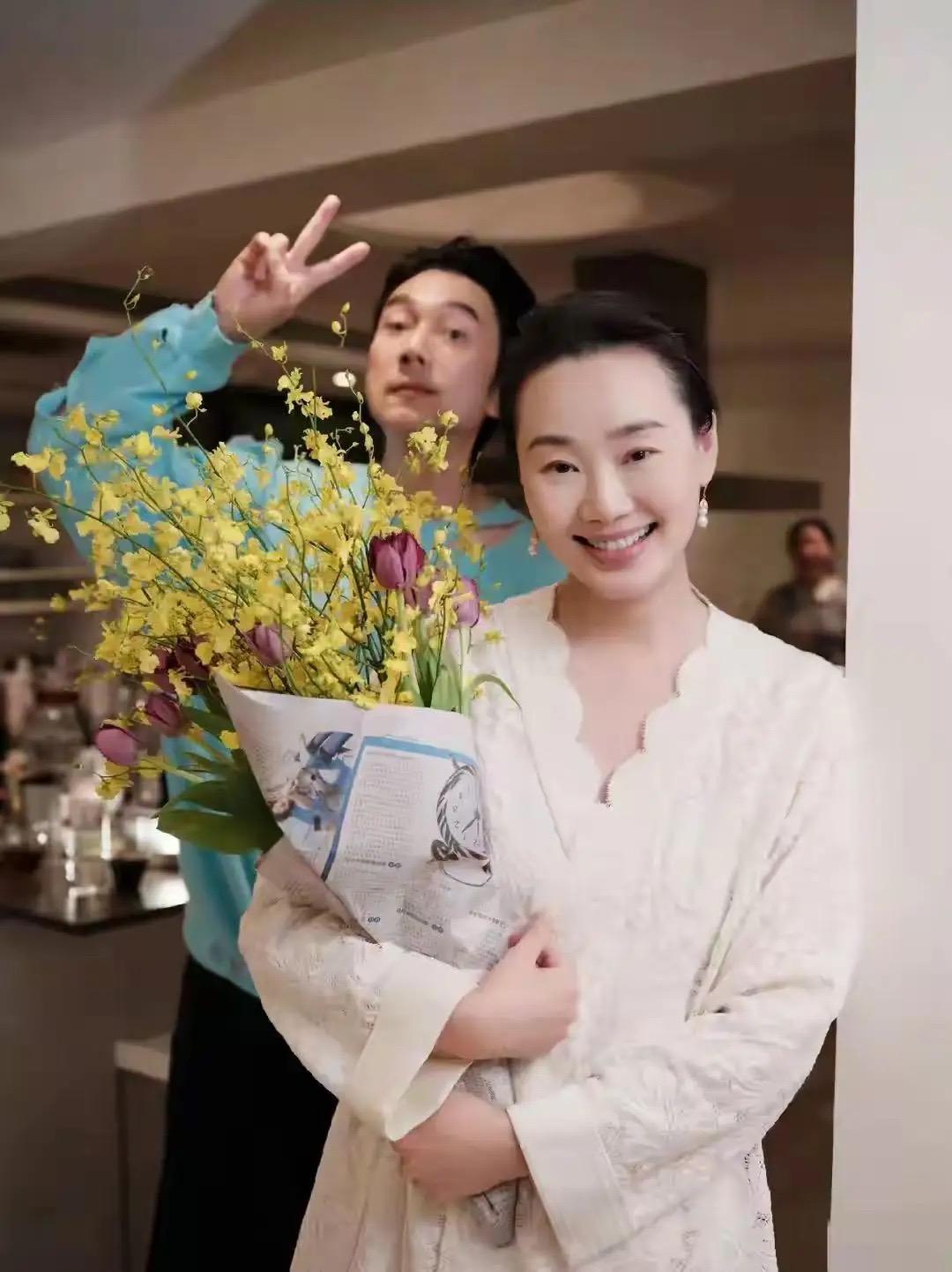 西華也54歲了,她身上有一種很溫和、從容的美。大兒子慶生,她穿了一條白色的長裙,挽起頭髮特別優雅大氣。