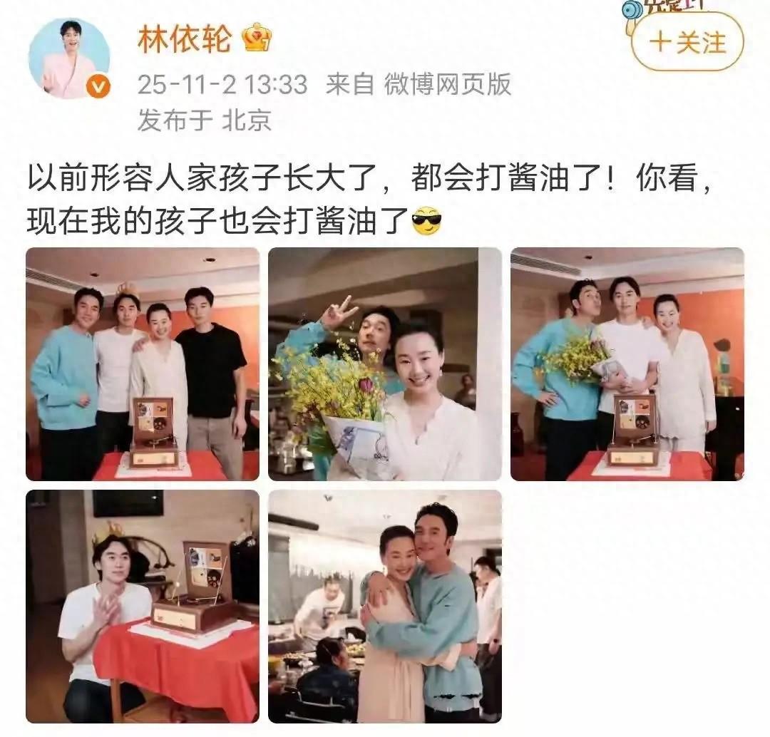 大兒子過生日,林依輪的哥哥、姐姐、還有老媽都來了。有一種家族的傳承在裏面,母子四人的合影更像是跨越了時代的對話。