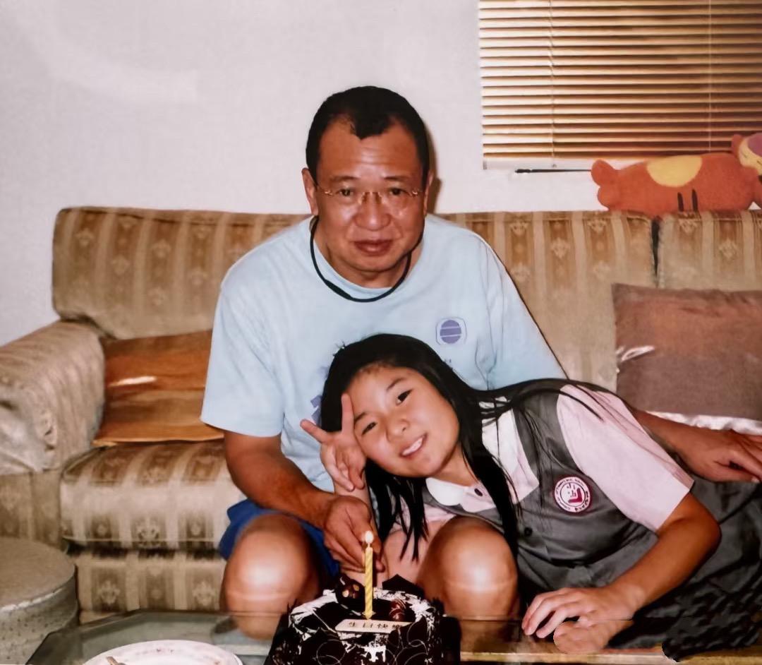 照片裏,大約十歲左右的許惠菁趴在爸爸許紹雄的腿上,父女感情特別親密。許紹雄老來得女,49歲時才盼來自己的女兒,對許惠菁特別寵愛。