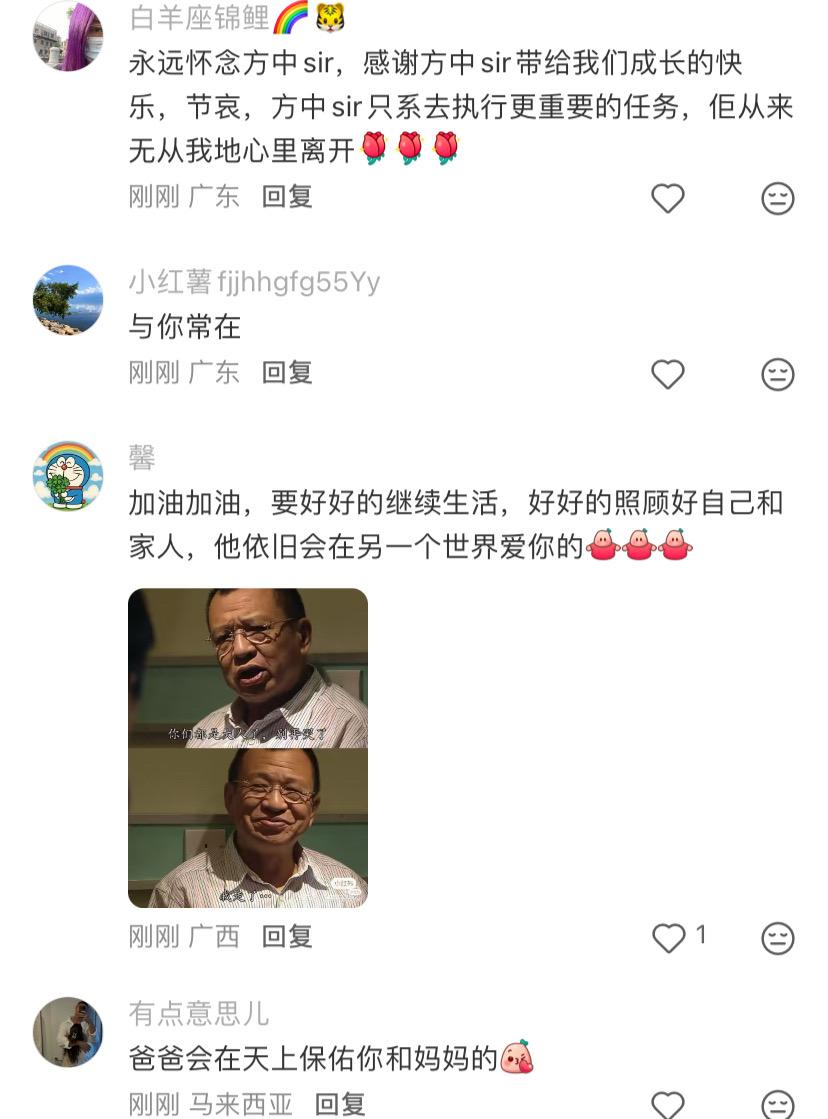 還有網友懷念許紹雄,懷念心中的方中sir,感謝方中sir給我們帶來的快樂。並且告訴許惠菁,要好好的繼續生活,照顧好自己和家人,爸爸依舊在另一個世界愛着你。