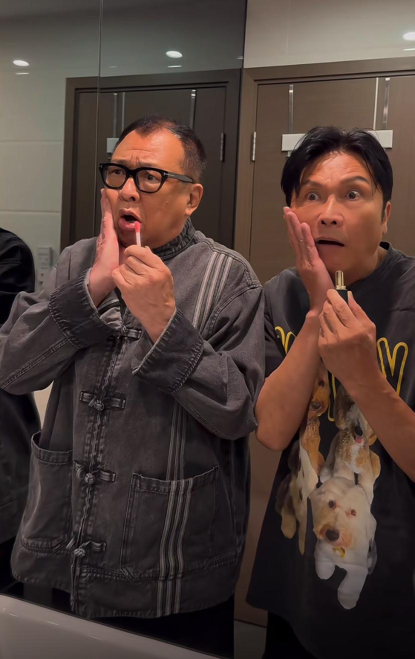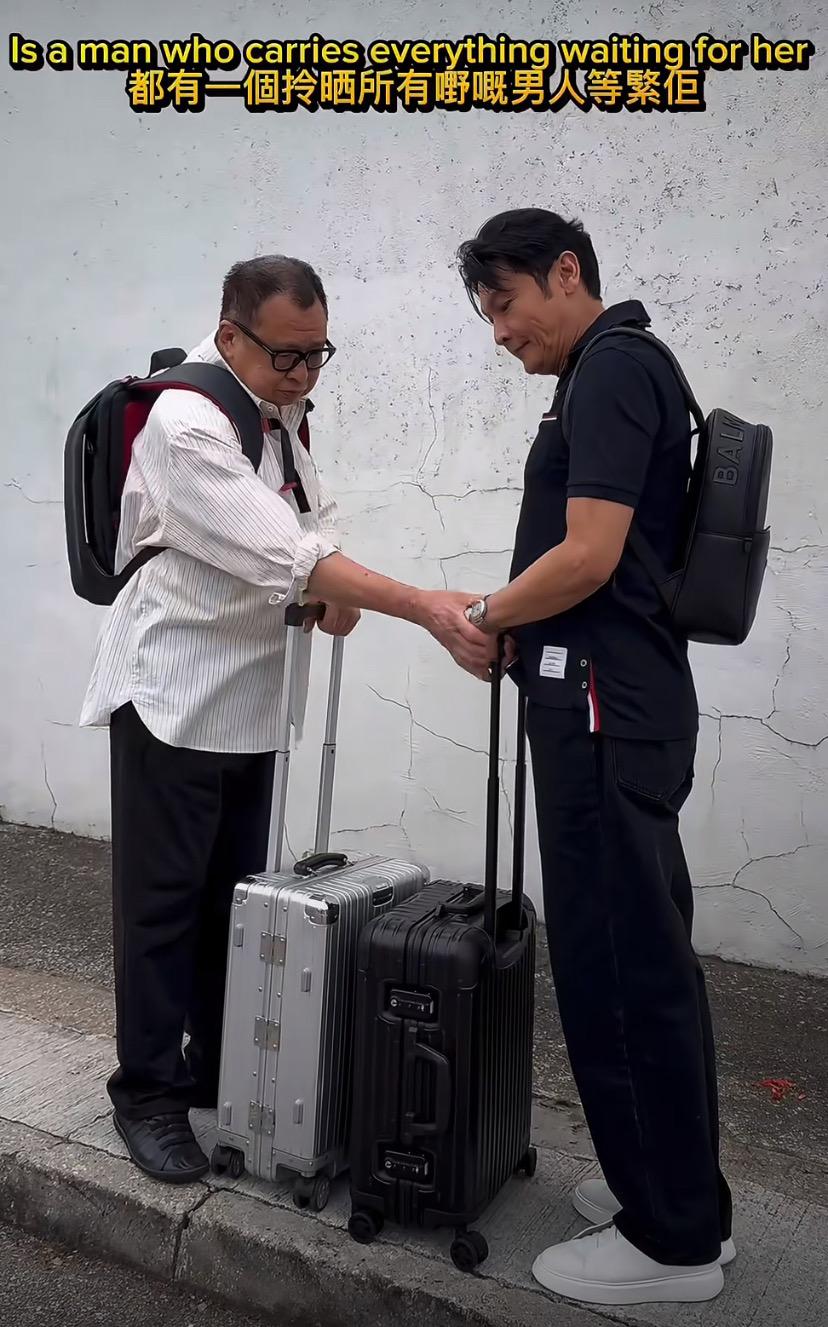 還有一張是許紹雄的單人照,像是在劇組工作時候拍的照片。許紹雄穿着黑色外套、白色T恤,打扮的簡約低調。
