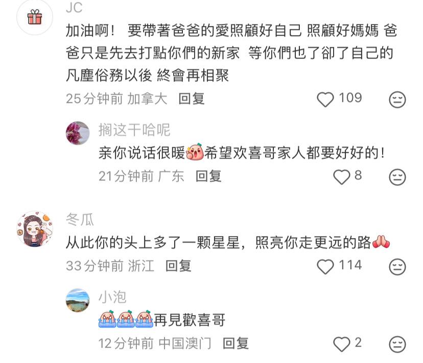 從此你的頭頂上多了一顆星星,能夠照亮你走更遠的路。歡喜哥走了,而“歡喜”會一直被延續被傳承。