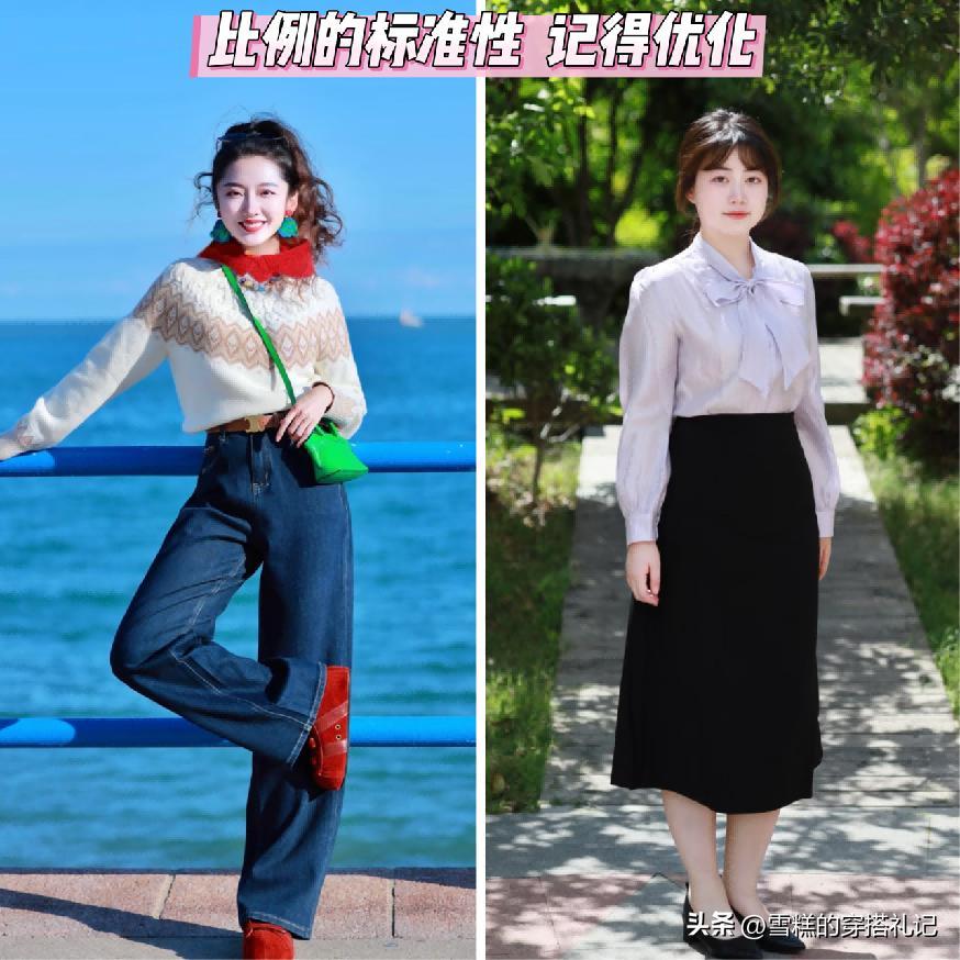 最後一個比較關鍵的,就是在選擇單品系列進行組合搭配的時候。怎麼樣去選擇適應的單品,又或者是組合起來的效果,對於我們的身材狀態有什麼樣的修飾,在這一方面的審美和品味,還有就是眼光是完全不一樣的,在這一組對比圖當中,相信大家就可以很明顯的看出來,會打扮的女性是完全會考慮到自己的身材不足和優勢,所將其對應的展現,揚長避短。
