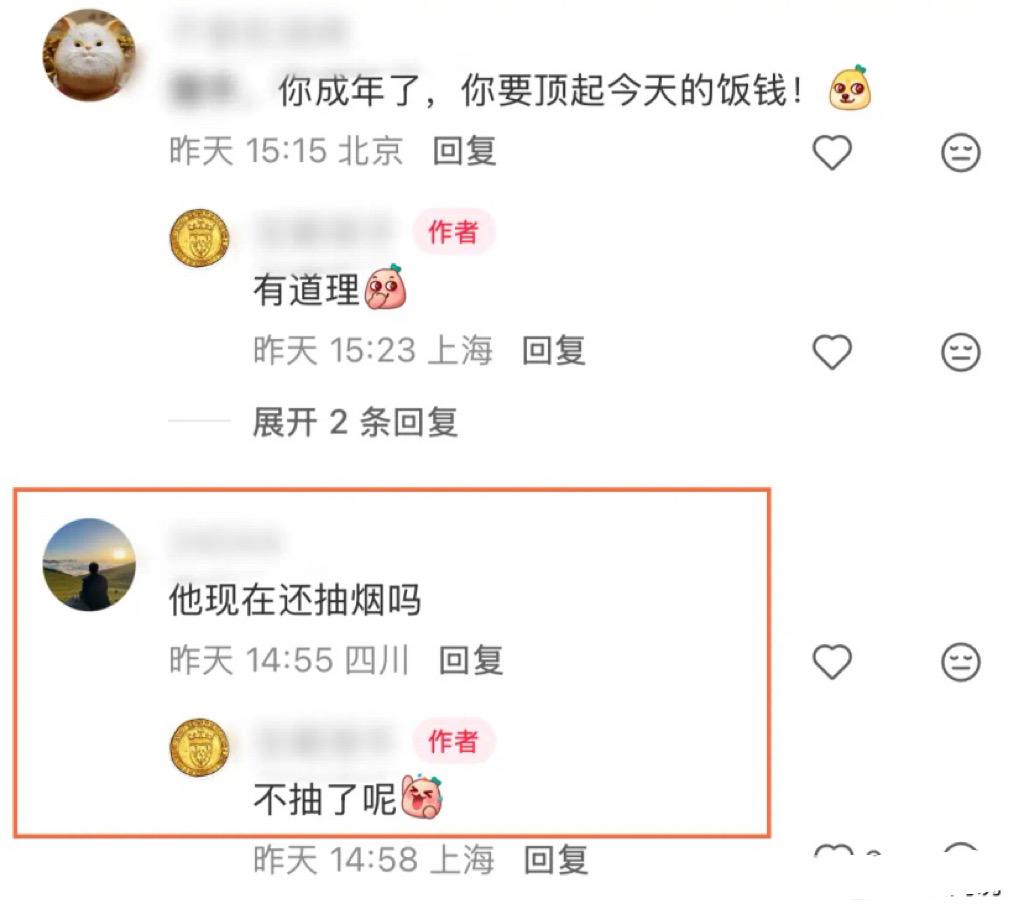 網友還透露了一個好消息,就是焦晃老師不再抽菸了。因爲不抽菸了、他身上的衣服也更加乾淨整潔了,不會像以前的時候一樣滿是煙洞了。