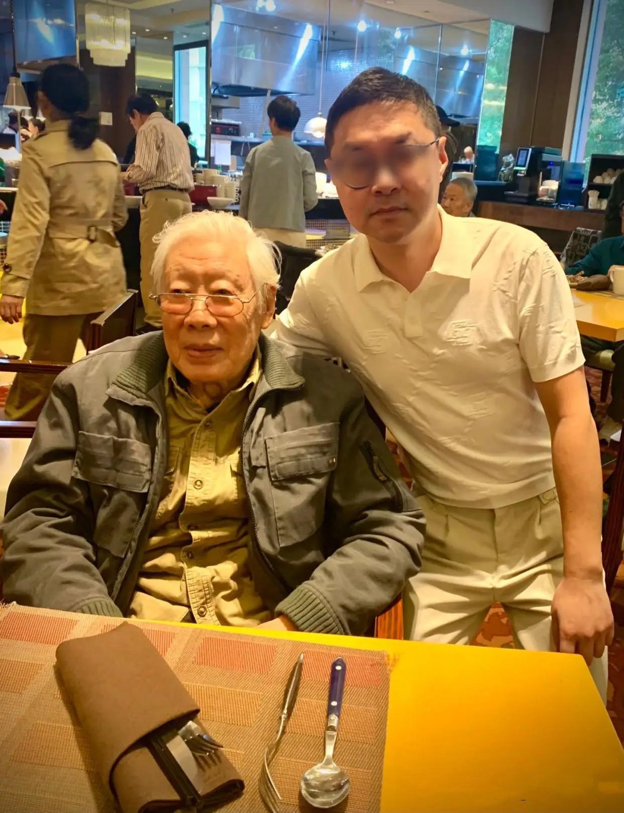 89歲焦晃外出喫飯,穿三層衣服沒煙洞乾淨整潔,自備餐具挺講究