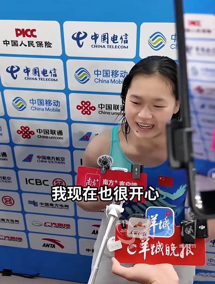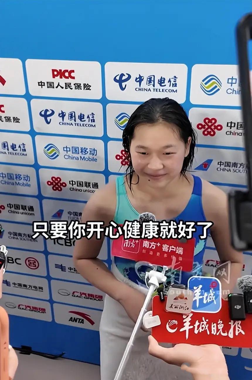 雖然沒有拿下前三,但是她完成了媽媽的囑託。她現在就很開心、跳水讓她覺得快樂,當她用盡自己的全力去跳的時候,成績就已經不那麼重要了。