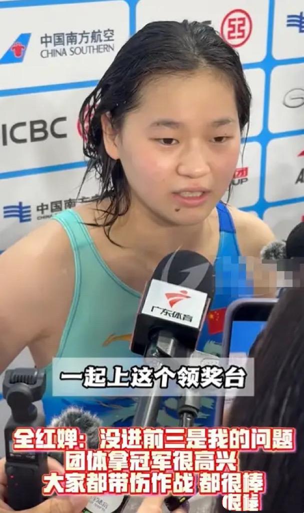 在賽後接受採訪的時候,全紅嬋說沒能一起走上這個領獎臺,是我的問題,很對不起王偉瑩,是自己沒有幫到她。