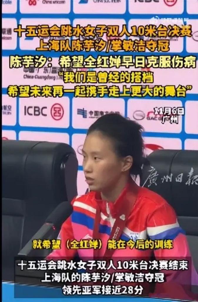 就連陳芋汐,都希望全紅嬋早日客服傷病。她說我們是曾經的搭檔,希望未來在一起攜手走上更大的舞臺。