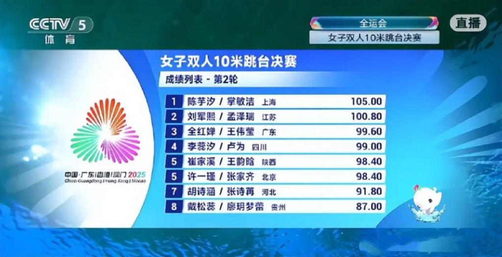在雙人十米跳臺中,第一輪陳芋汐和掌敏潔以高出1.2分的成績領先全紅嬋和王偉瑩,本以爲這種比分會有反轉的可能。