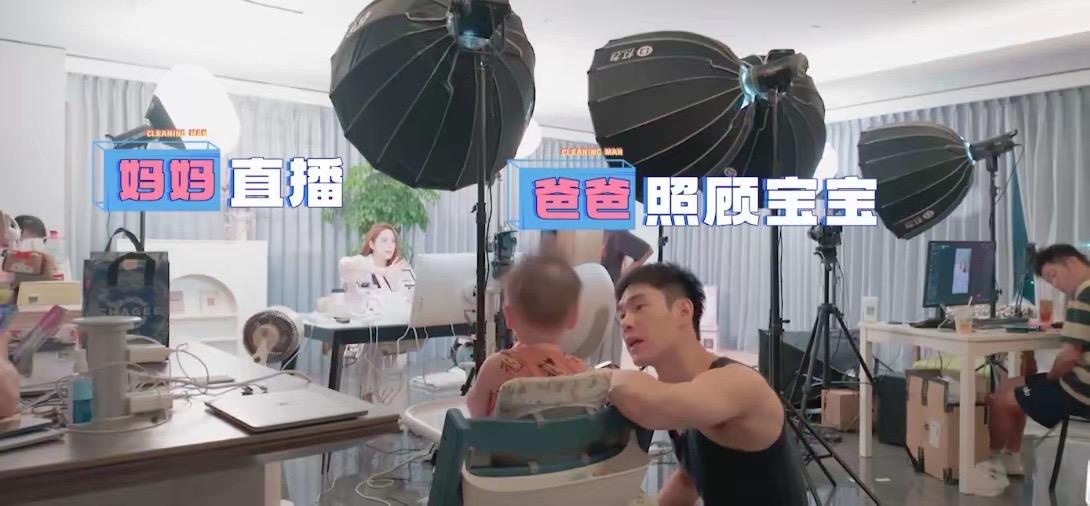 他們的小日子相對簡單,平日就是媽媽直播、爸爸帶娃。客廳裏的爬行墊收起來,就成了直播間。