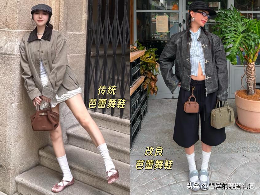 在搭配上,芭蕾平底鞋與九分褲搭配可以完美展現腳踝纖細線條;與A字中長裙組合則散發出復古少女感;。對於小個子女性來說,選擇尖頭設計的芭蕾平底鞋能夠在視覺上延長腿部線條,避免“顯矮”的困擾。