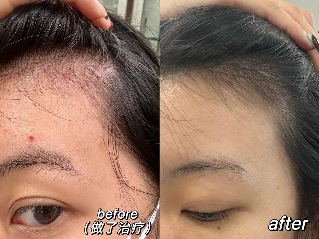 沒想到打卡Hairmax才兩週,她就驚喜地發現頭皮出油明顯改善,最在意的“山羊角”位置還冒出了一層細密的小絨毛!▼