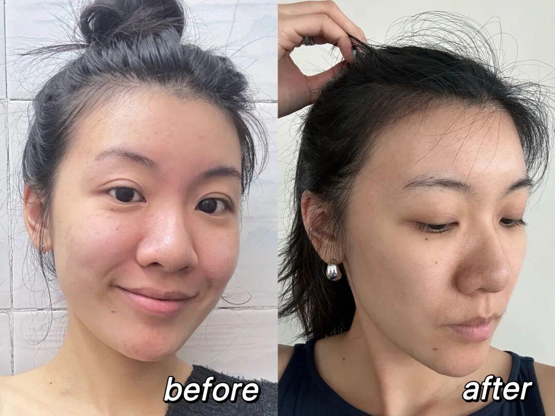 堅持用了2個多月,撩開頭髮能看出髮際線圓潤濃密了不少,頭皮出油的情況也沒那麼嚴重。 ▼