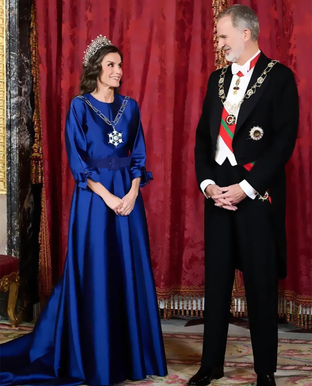 王后萊蒂齊亞則如 “佳人飾明榼,纖手膾紅鮮”,五官棱角分明,身材勻稱纖瘦,自帶清冷優雅氣質。二人此次訪華,先赴北京再抵成都,行程中處處透着默契。