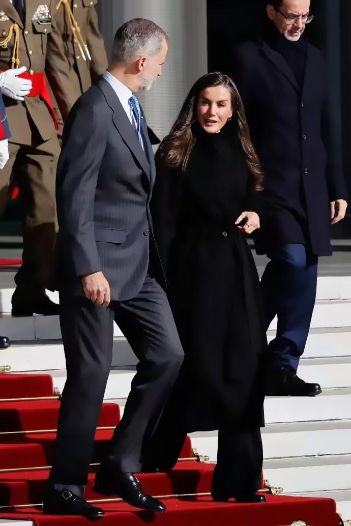 “服之無斁,采采卷耳。” 萊蒂齊亞此次訪華的黑色大衣造型,堪稱秋冬時尚範本。她偏愛貼身剪裁的大衣,能完美勾勒身形曲線,凸顯勻稱體態,這是其穿搭的核心祕訣。