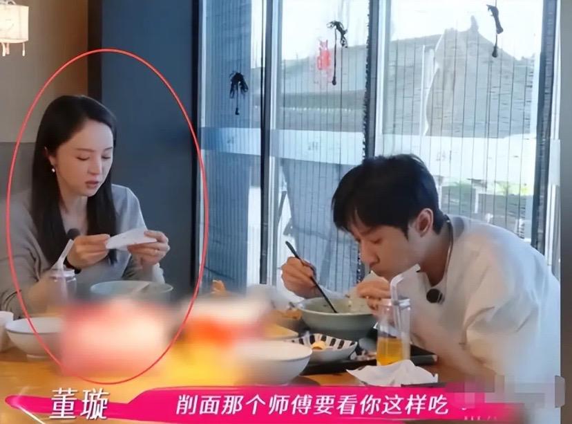 在節目中,董璇也時刻維護自己的女神形象。甚至吐槽張維伊喫麪的姿勢,作爲女明星時刻都保持着優雅和精緻。
