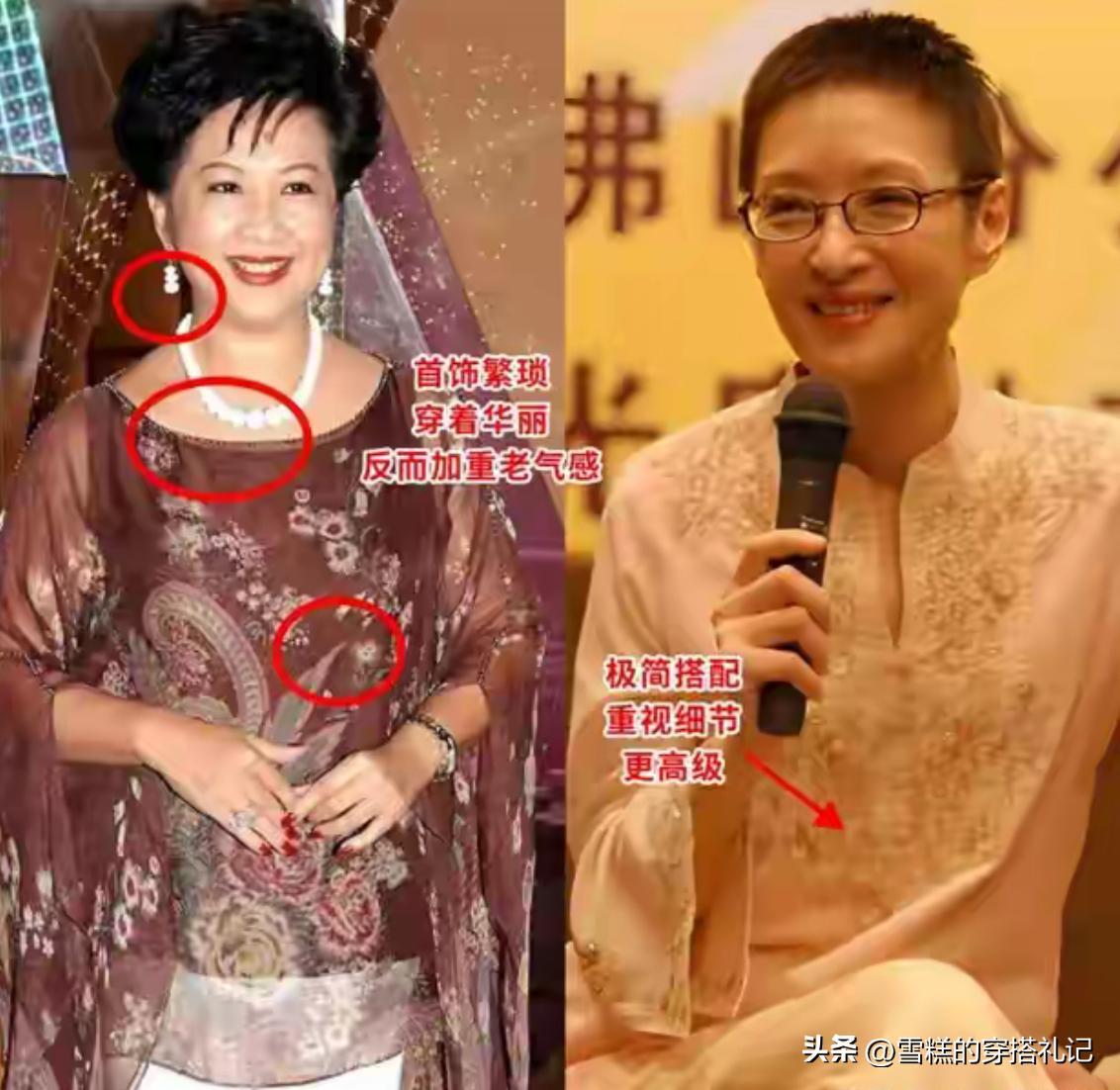 衣服的裁剪設計,對身形線條的影響力也非常大,女人上了年紀之後,不要再穿曲線感強的衣服了,尤其是緊身衣,穿在身上瞬間勒出贅肉感,而且還很勒肉。