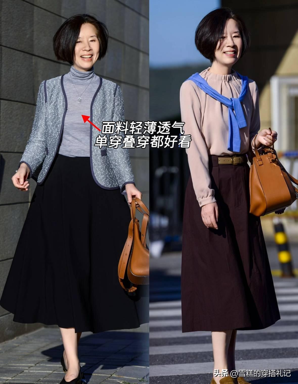 相比之下,優雅風的穿搭,才更適合中年女人,柔軟面料+寬鬆版型,對身材的包容性更高,而且還可以削弱臃腫感,分分鐘穿出好氣質。