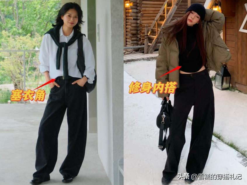 (2)拔高腰線:高腰+露腰/扎衣角,強行“拉長”下半身