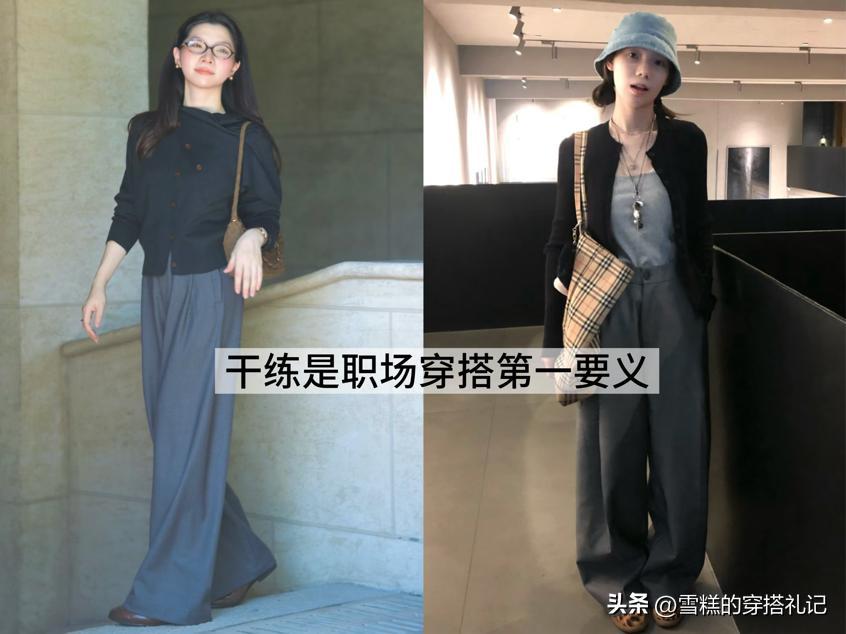 職場穿搭的核心是“專業得體又不失精緻”,彎刀褲的挺括版型和西裝面料的結合,剛好滿足這個需求,既能展現職場人的幹練,又能通過弧形剪裁增添時尚感。