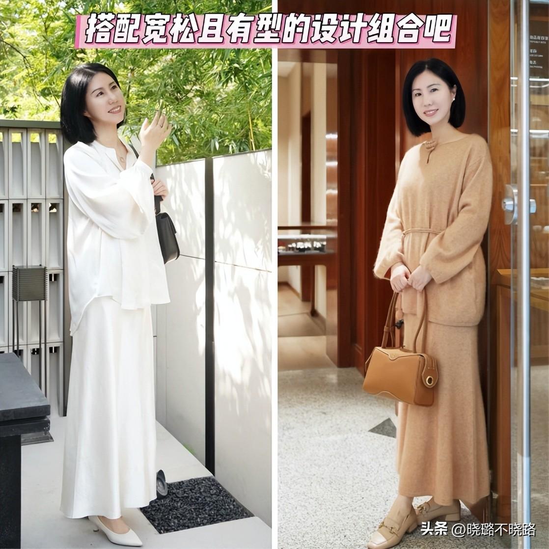 對於不少的女性來說,到了這個年紀之後,身材就會有一些虛胖變形,又或者是很容易浮腫,所以我們在選擇單品的時候,可以優先於運用寬鬆的設計走向,也一定要保證它即便是寬鬆,但是整體的版型狀態是很有型的,預算可能會高一些,但入手這樣的單品,組合起來的時候不管是對氣質還是身材的優化都很值哦。