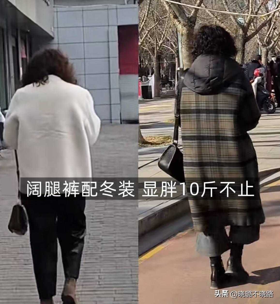衆所周知,冬裝一般都比較厚重,例如蓬鬆的羽絨服外套、寬鬆的羊絨大衣、皮草等等,它們和闊腿褲的組合,只會放大身材缺點,橫向的拉寬身形線條,顯胖10斤不止。