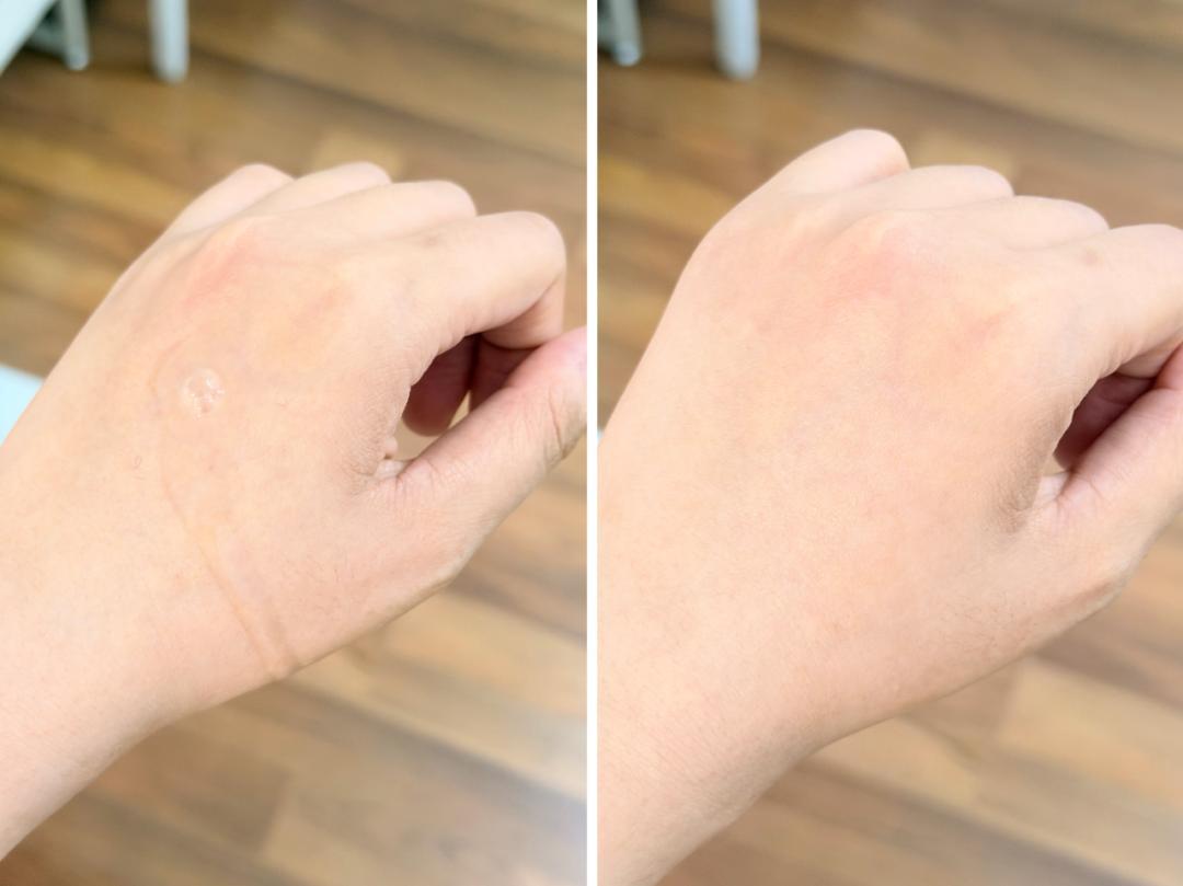 質地是透明水狀,吸收後基本沒什麼存在感,不黏不糊眼睛,也不影響後續工作(玩手機)。▼