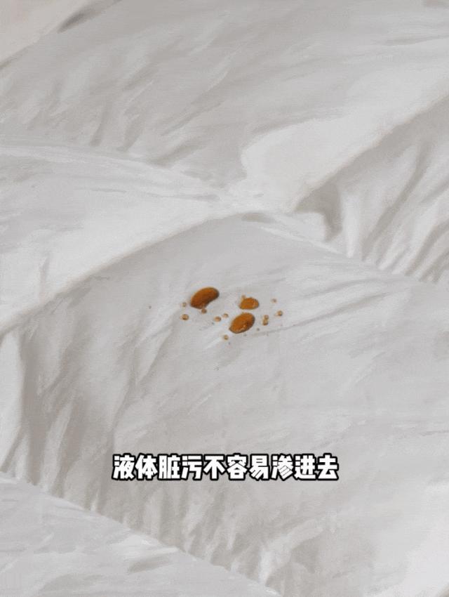 大家還比較關心鵝毛軟墊的清潔問題,其實並不複雜,爲了讓我們方便、省心地用它,Smiley做了梭織工藝的高密度三防面料:防水、防污、防油,一般的水、帶顏色的茶水、咖啡都不容易附着在上面,像落在荷葉上一樣順着邊邊流走,擦乾淨後基本無漬。