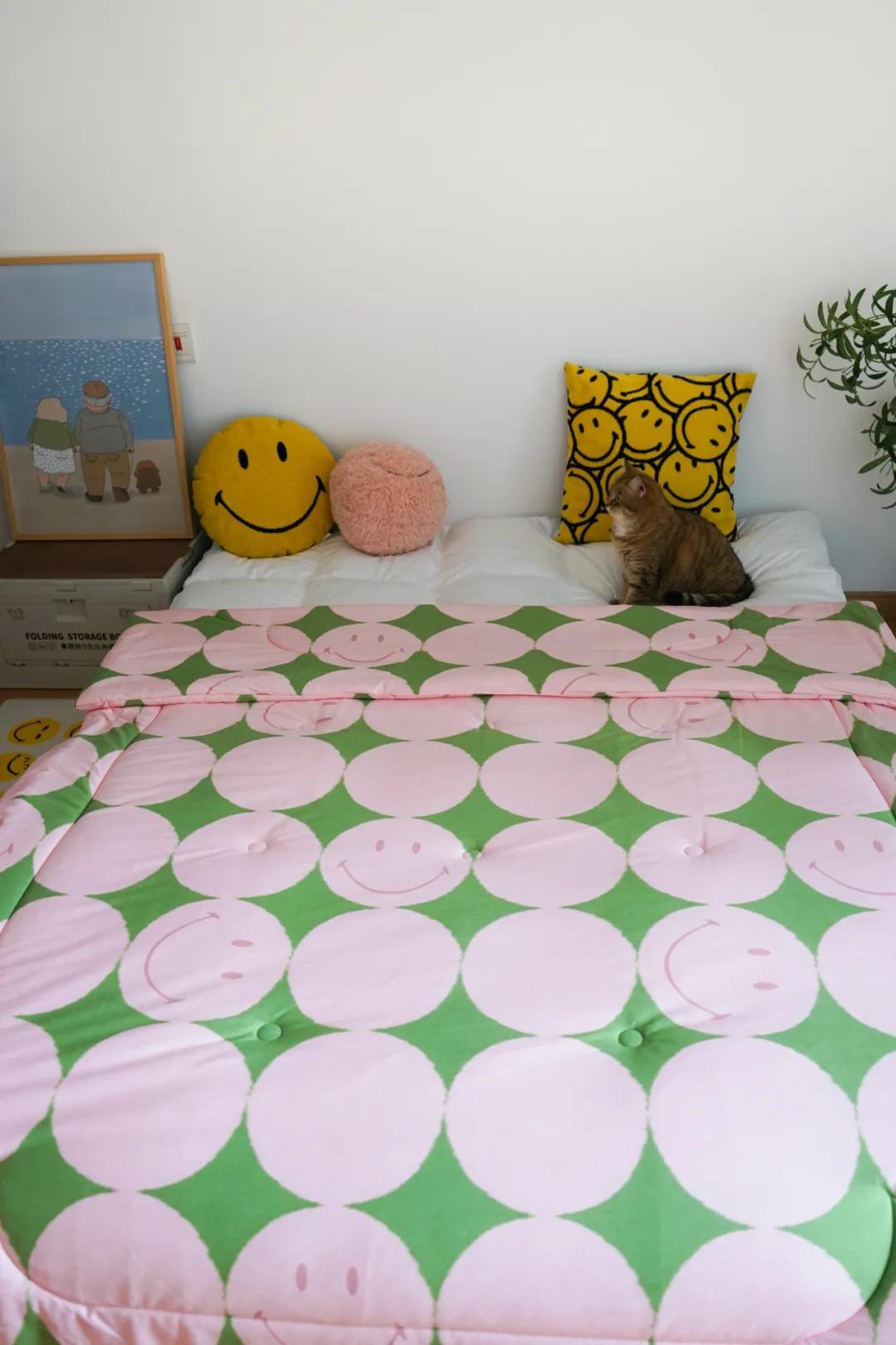 前陣子阿花去法國酒莊玩,參觀當地酒莊主人的私宅,裏面的家居用品有好多都是Smiley home的,從拖鞋、地墊到玩偶、牀品,都有着大大的燦爛笑臉,給旅途帶來了好心情。開心到阿花一下子撲到牀上去,伸展四肢,好舒服~ ▼