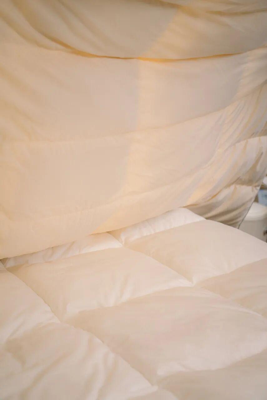 冬天我一直比較喜歡蓋羽絨被,又輕又暖,睡起來像被包裹、又毫無負擔,蓬鬆度也比一般的被子要好很多。唯一不太好的是羽絨被不方便洗,自己洗是一個大工程,送去幹洗店也有可能被洗壞,風險挺大,日常只能曬一曬。