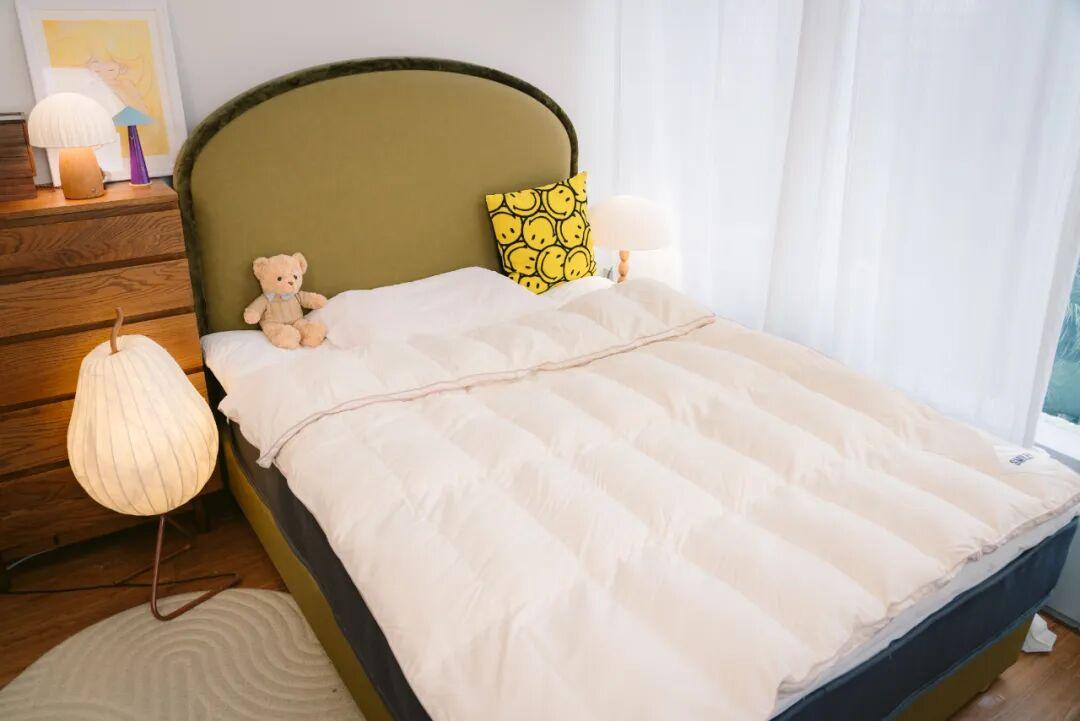 他家的鵝毛軟墊是上海新天地安達仕酒店Smiley主題房(4000多一晚)的同款,夾在牀墊和牀單之間的那一層鵝毛墊,又稱爲topper,有了它,就有了溫暖的、倒頭就睡的幸福感。