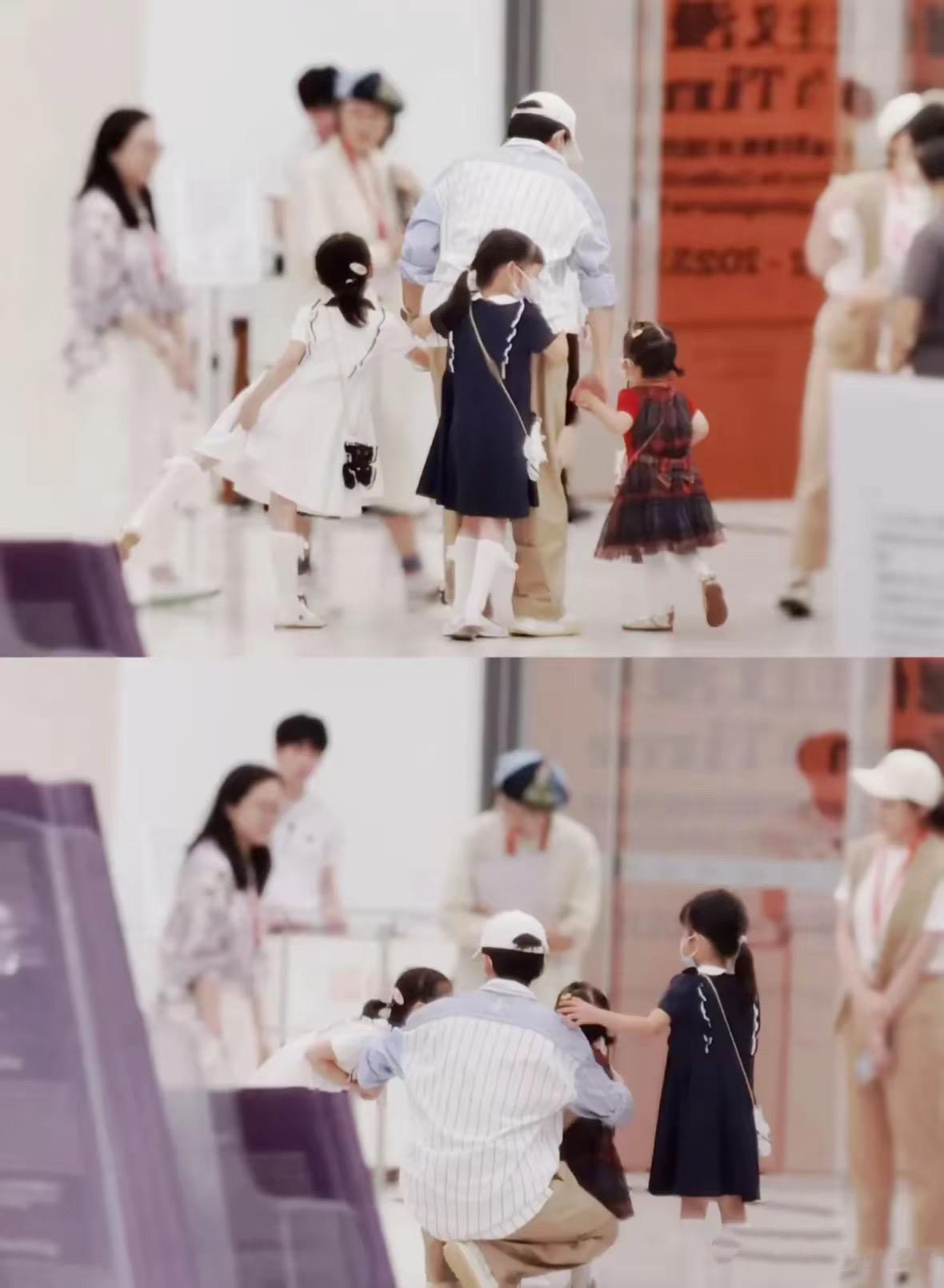 張傑帶3女兒看演出,雙胞胎姐姐背影像謝娜,小咘芽長腿很喜人!