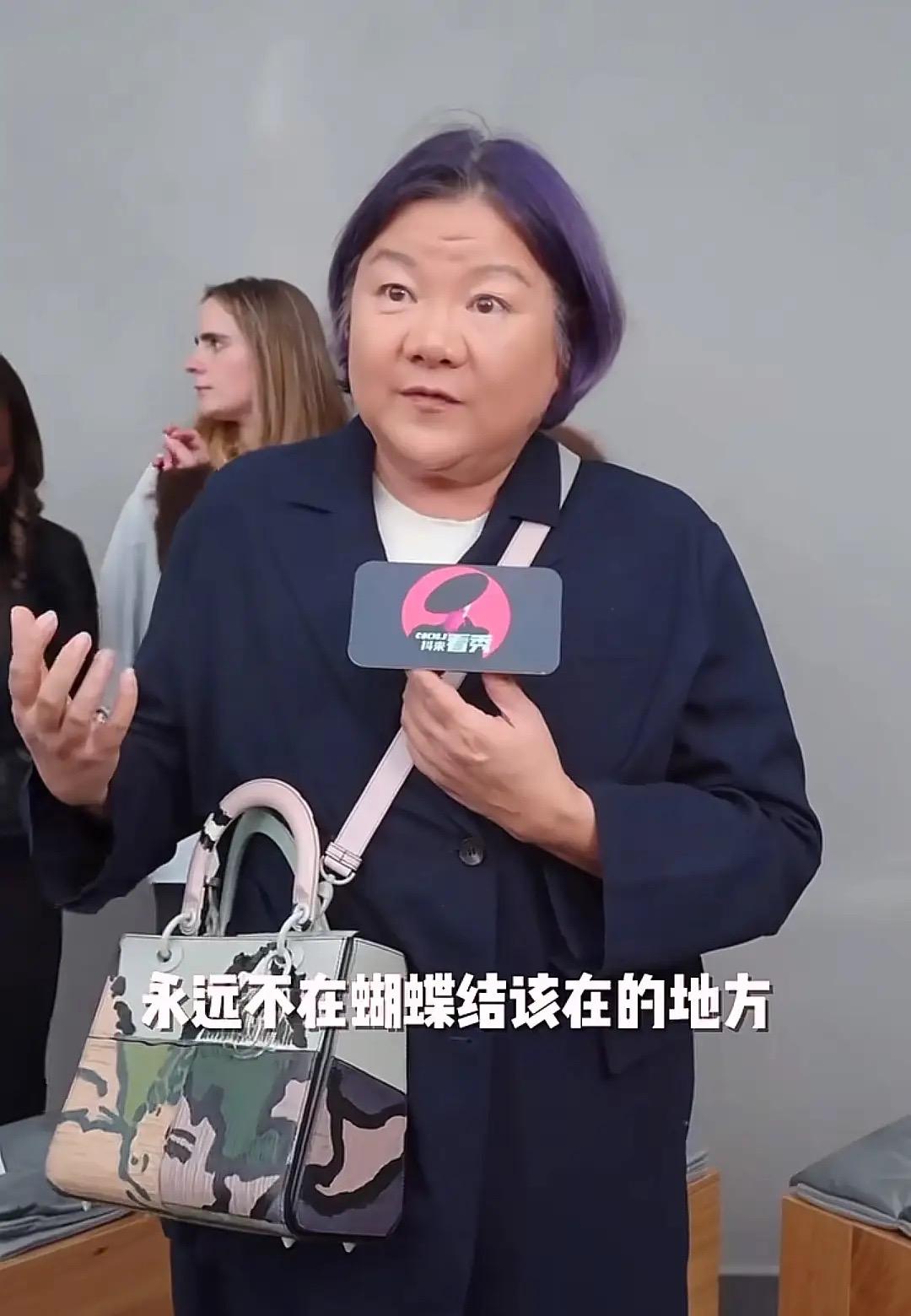 這次現身,洪晃就像是換了個人一樣。身型更加清瘦、顏值也回春了一樣。染了紫色的頭髮,不再顯得那麼蒼老了。