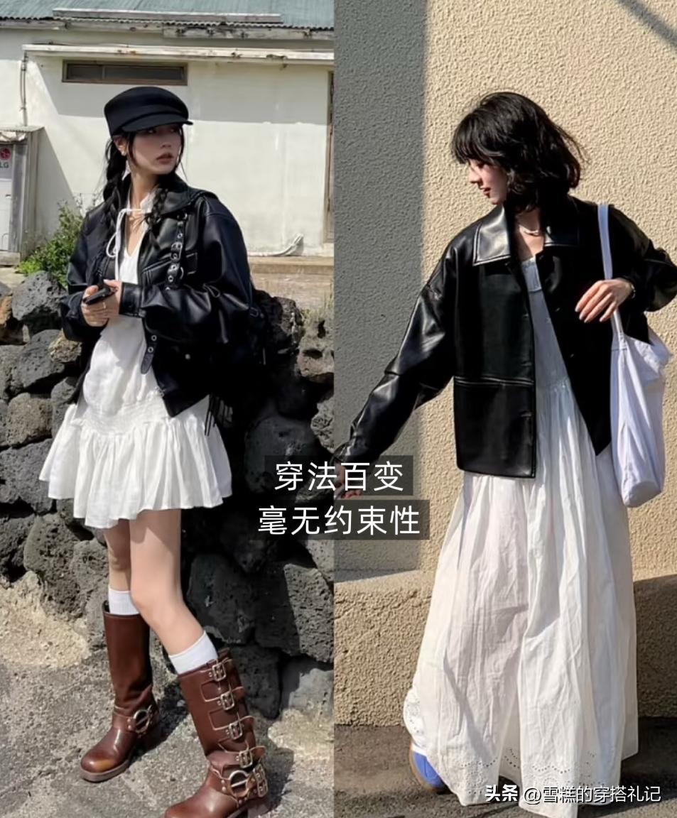 走在大街小巷,你會發現“皮夾克+裙子”特別受歡迎,而且備受潮人的追捧,可以滿足各種場景的需求,日常逛街、通勤上班、露營、聚會,不挑年齡身材,可以說誰穿誰好看!