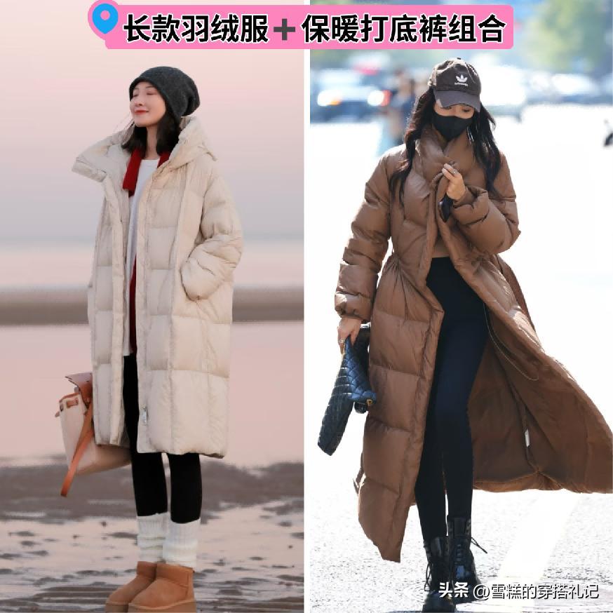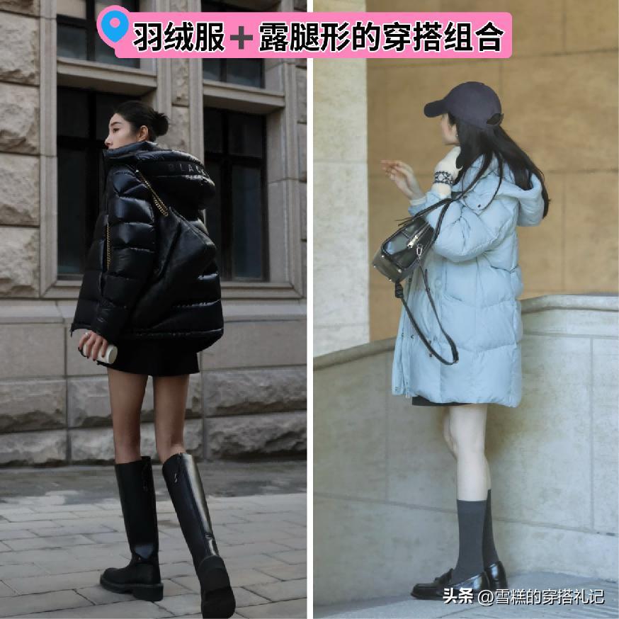 ㊁ 略長羽絨服+保暖黑絲、光腿神器,時髦好看