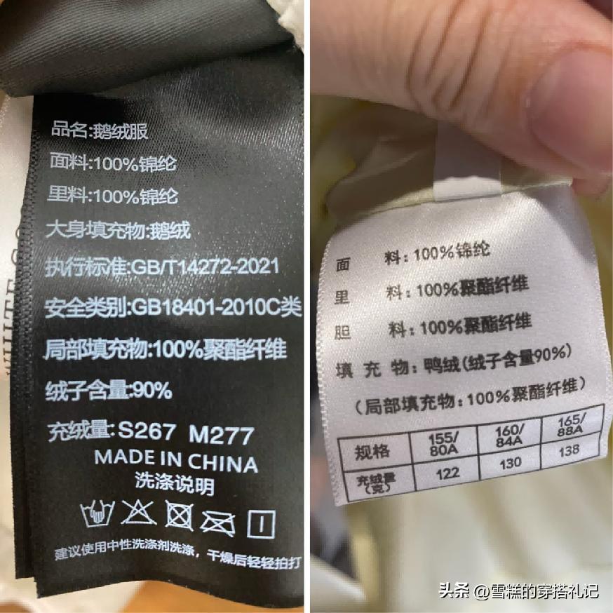 所以建議屏幕前的各位女性在入手羽絨服的時候,充絨量的標準我們還是要有一個考量的,正常來說的話基本都是在60%以上的,這樣是一個正常的數量準則。尤其是大家在入手一些品牌,又或者是當下比較知名的羽絨服款式的時候,一定要認準。別入手了一款長款的羽絨服,結果充絨量只在20~30%那麼真的是屬於交了智商稅了。