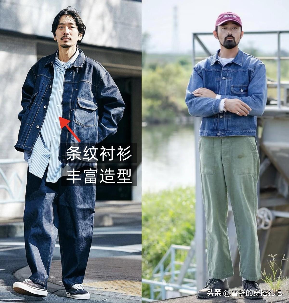 牛仔外套裏面疊搭條紋襯衫或者白T恤,搭配一條牛仔工裝褲,減齡時尚兩不誤,輕鬆穿出自己的個性特色。