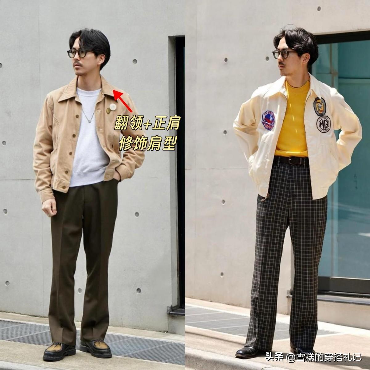 比如款式簡約的夾克外套,採用翻領+正肩設計,可以很好的修飾肩型,提升精氣神,內搭基礎款圓領T恤,組合上直筒西裝褲,平添一絲復古氣息,休閒上班皆可穿。