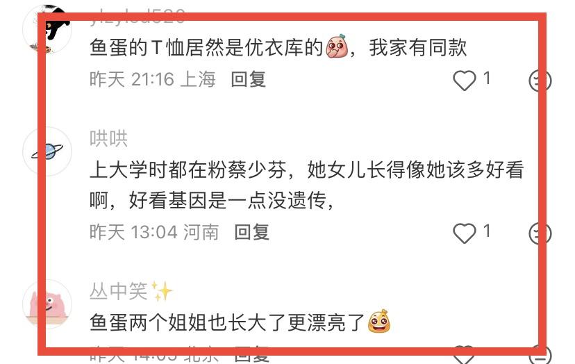 還有網友發現,魚蛋的T恤竟然是優衣庫的。雖然蔡少芬和張晉都是大明星,但對一家人都很接地氣,衣着打扮都很親民,魚蛋穿優衣庫的T恤,也不追求國際大牌。