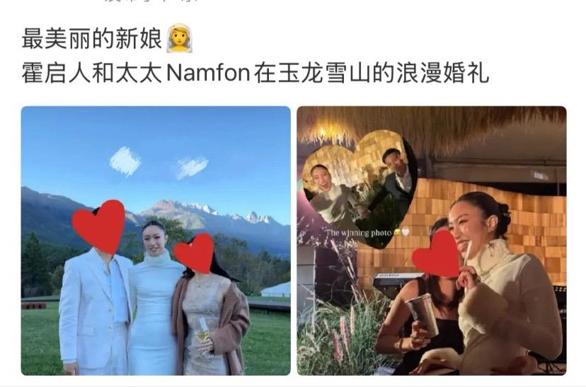 這場婚禮,格外的浪漫,也有不少親朋好友前來祝賀。而霍啓仁和Namfon的婚禮照片,則是由好友曝光出來的。