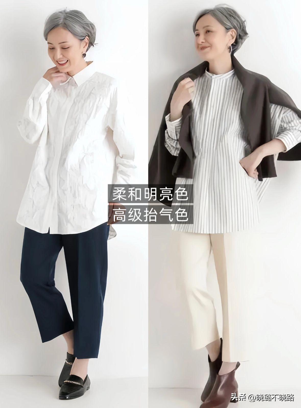 在服裝的色彩挑選上,儘量不要選太暗沉、扎眼的顏色,前者會暴露真實年齡,後者又會顯得用力過猛,建議中老年女人可以多穿柔和的明亮色彩,例如米白色、杏色、淺粉色、淡藍色……